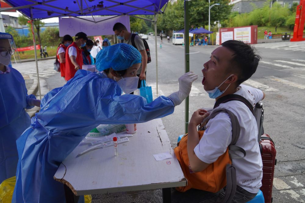 8月24日,贵州医科大学新生报到注册时接受核酸检测。新华社发(李菡逸 摄)