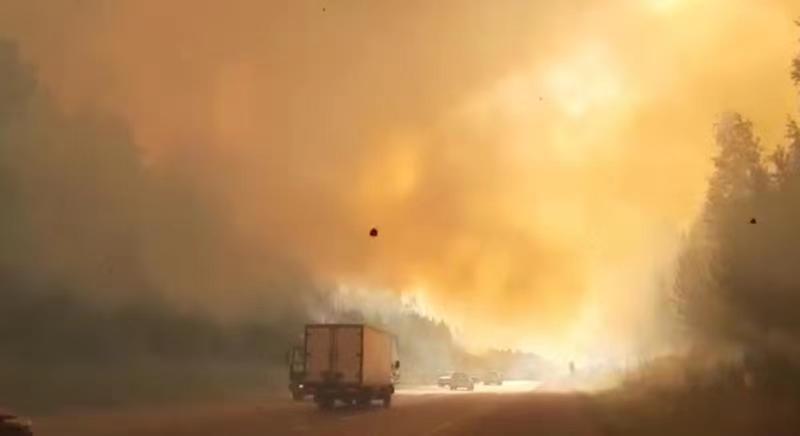 当地时间8月24日,受森林火灾影响,俄罗斯中部城市彼尔姆至叶卡捷琳堡的高速公路被大火封锁。大火造成空气温度升高,烟雾使得车辆行驶缓慢。当地政府已经通知附近居民做好疏散准备。