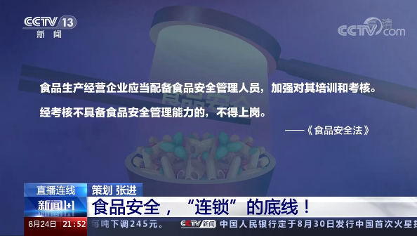 中国人民大学法学院副院长 王旭:首先应该说这个问题是在我国食品产业规模化、集约化程度越来越强,市场越来越有活力的大背景下出现的,它同时也对市场秩序提出了新的挑战,那就是我们要监管一个“点”相对容易,但当连锁店成为一个“面”,成为集约化、规模化的存在,也意味着我们对于它的监管手段也必须要升级。
