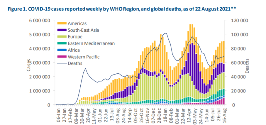 当地时间24日,世界卫生组织发布的新冠肺炎每周流行病学报告显示,上周全球新增新冠肺炎确诊病例数超过450万例。在几乎连续两个月的持续增长后,新增确诊病例数量有所稳定。新增死亡病例数超过6.8万例,数量与前一周类似。