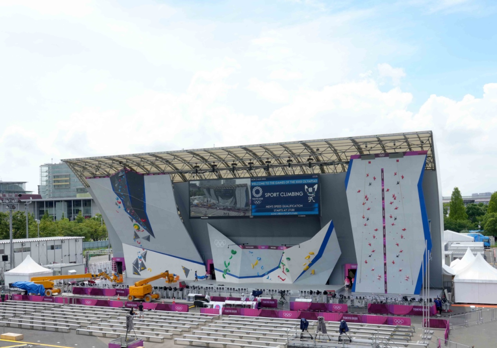 此次东京奥运会只设立男子全能和女子全能两个项目的比赛。男女全能比赛又由速度、攀石和难度三部分构成。竞技攀岩和三人篮球两个项目共用一块场地,是在东京湾青海城市运动公园内临时搭建的,三人篮球比赛结束后再改造搭建成竞技攀岩的赛场。