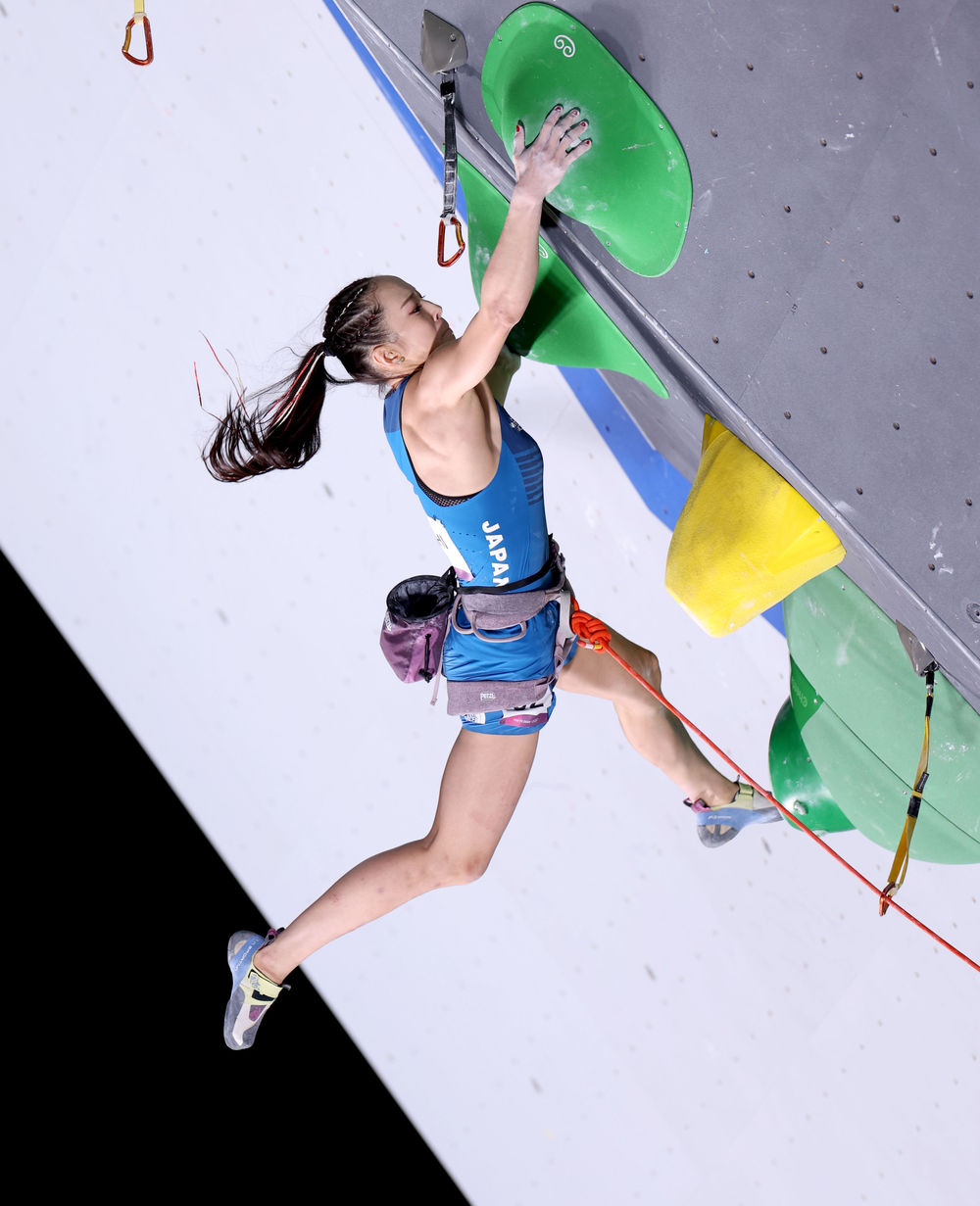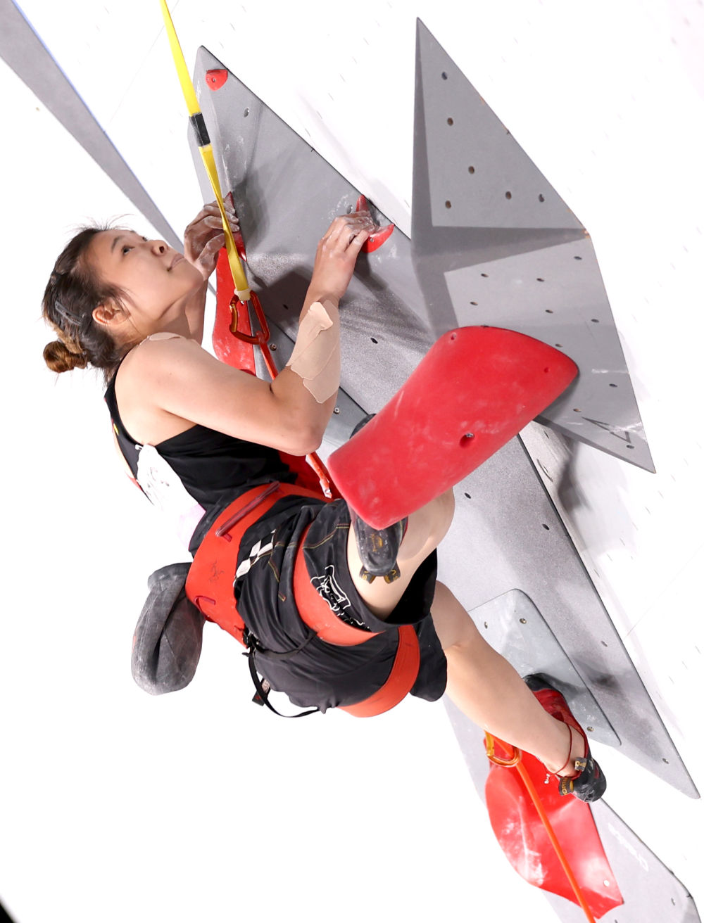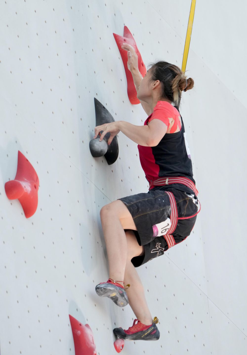 8月6日,日本选手野口启代在竞技攀岩难度项目比赛中。