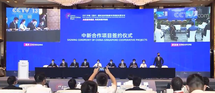 20个中新合作项目集中签约,主要涵盖区块链、工业互联网、国际金融等领域,以及中新国际互联网数据专用通道的示范应用。