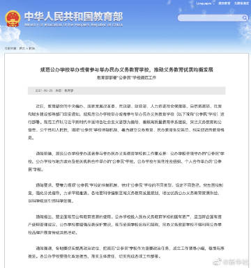 【教育部等八部门部署#规范公办学校举办或参与举办民办义务教育学校#】记者25日从教育部获悉,教育部、中央编办、国家发展改革委等八部门近日印发通知,就规范公办学校举办或者参与举办民办义务教育学校(简称“公参民”学校)进行部署。通知明确,规范公办学校举办或者参与举办民办义务教育学校的工作重点是:公办学校单独举办的“公参民”学校,公办学校与地方政府及相关机构合作举办的“公参民”学校,公办学校与其他社会组织、个人合作举办的“公参民”学校。通知指出,要全面规范公有教育资源的使用,公办学校投入民办义务教育学校的国有资产,应当符合国有资产使用管理规定。公办学校要增强品牌保护意识,规范使用学校名称和简称,民办义务教育学校不得利用公办学校品牌开展宣传或其他活动。(记者余俊杰)