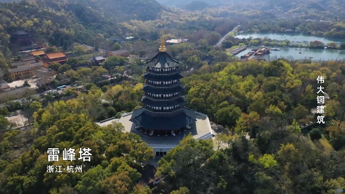 雷峰塔高71.679米,用280吨铜,铸就了钢骨铜身、大气磅礴的经典建筑,重现“雷峰夕照”之壮观景象,成为杭州又一标志性建筑。