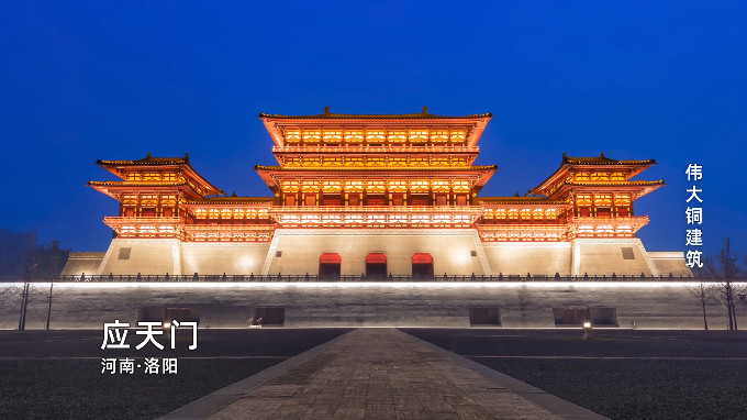 应天门遗址保护展示工程所有构件造型和纹饰图案依据唐代资料复原,大量应用了敦煌元素和铜元素。