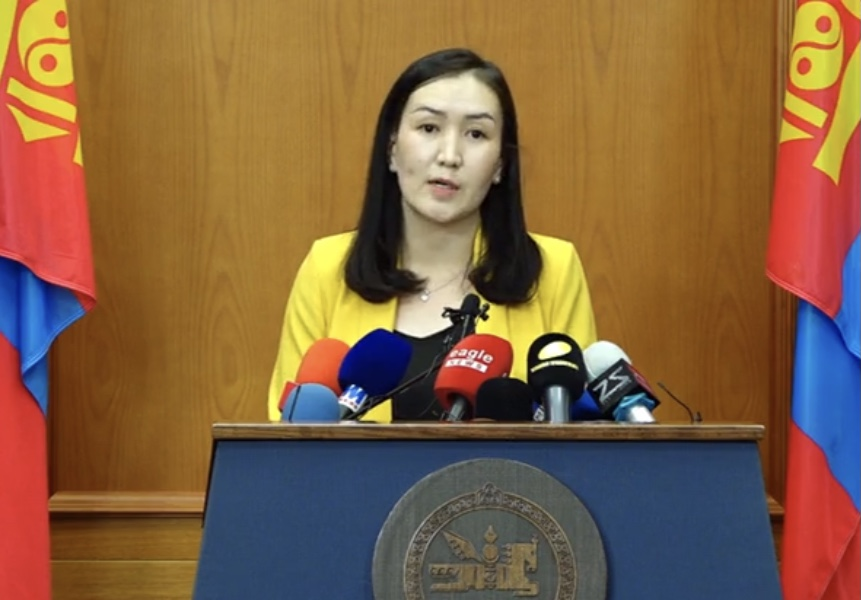 △蒙古国政府总理新闻发言人宝勒尔图雅25日下午在新闻发布会上通报政府决定(图片来源:蒙古国政府官网)
