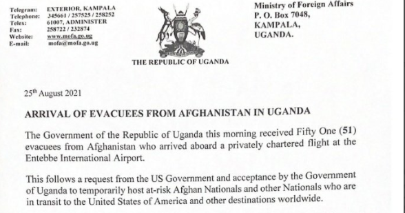 乌干达官员上周曾表示,应美国要求,乌干达将为2000名从阿富汗撤离的人员提供庇护。在他们前往第三国之前,乌干达将作为中转站。(总台记者 马培敏)