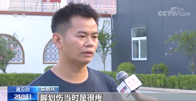 袁格兵:脚划伤当时也很疼,但是我必须要把它忍下来,不管它流多少血,我尽量去把人往上救,疫情的时候,大家都去支援我们湖北,就是想到这些,然后我就只管救。因为我从小就喜欢游泳,我在水里面基本上还是有把握的。