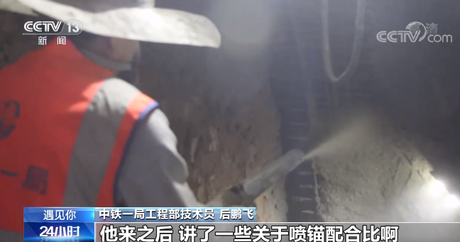中铁一局工程部技术员 后鹏飞:我们这个喷锚料,大概一方差不多四五百块钱,当时下面工人喷一次掉一次,他来之后,讲了关于喷锚的配合比、速凝剂等等,然后他开始喷锚,很快就把拱顶搞定了,而且当时达到的效果还非常美观,大家都非常佩服他。