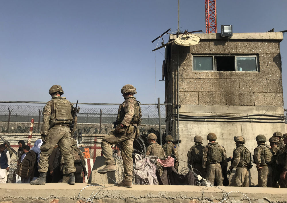 8月22日,外国部队成员聚集在阿富汗喀布尔机场外。(新华社发,拉赫马图拉·阿里扎达摄)
