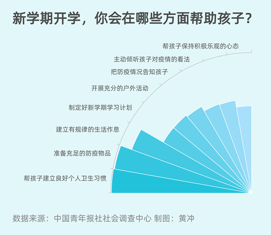 调查中,50.6%的受访家长会帮孩子制订好新学期的学习计划,50.5%的受访家长会开展充分的户外活动。