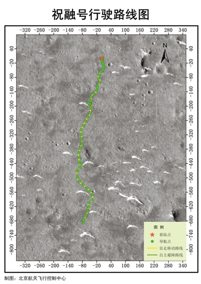祝融号行驶路线图(截止到8月15日)