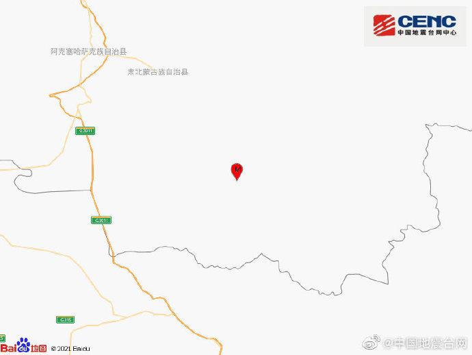 据中国地震台网测定,2021年8月26日7时38分,甘肃酒泉市阿克塞县(北纬38.88度,东经95.50度)发生5.5级地震,震源深度15公里。据了解,震中位于无人区,周边人口稀少。