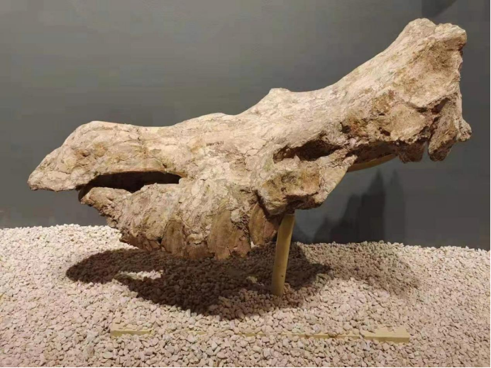 这是巨犀下颌骨化石标本(新华社记者 杨雅婷 摄)
