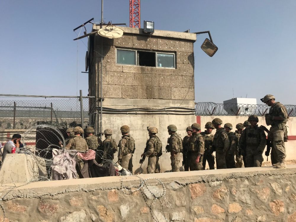 法新社报道,喀布尔机场各入口的安全保障由美国海军陆战队在内的军方人员负责。