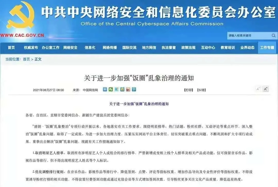 取消明星艺人榜单,严管明星经纪公司,规范粉丝群体账号,严禁呈现互撕信息,不得诱导粉丝消费……日前,中央网信办发出通知,围绕明星榜单、热门话题、粉丝社群、互动评论等重点环节,切实突破重难点问题,重拳出击解决“饭圈”乱象问题。十条举措,条条切中要害,为营造风清气正的网络环境及演艺氛围,找准了切入点和着力点。