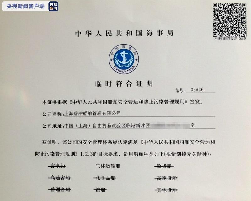 2021年8月27日,洋山港海事局为上海碧洁船舶管理有限公司颁发了《临时符合证明》证书,这标志着该公司正式取得开展国内沿海航线气体运输船(含LNG加注)船舶管理业务的资质,这是中国(上海)自由贸易试验区临港新片区首家取得该资质的船舶管理公司。