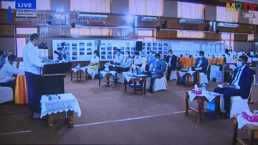 当地时间8月27日,缅甸看守政府国家管理委员会举行新闻发布会。发言人佐敏吞在发布会上展示了对2020年大选舞弊情况的调查文件,并介绍了近期的安全形势和防疫工作情况。