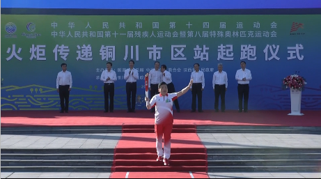 8月27日上午,第十四届全国运动会和全国第十一届残疾人运动会暨第八届特殊奥林匹克运动会火炬传递活动第六站在陕西铜川市举行。