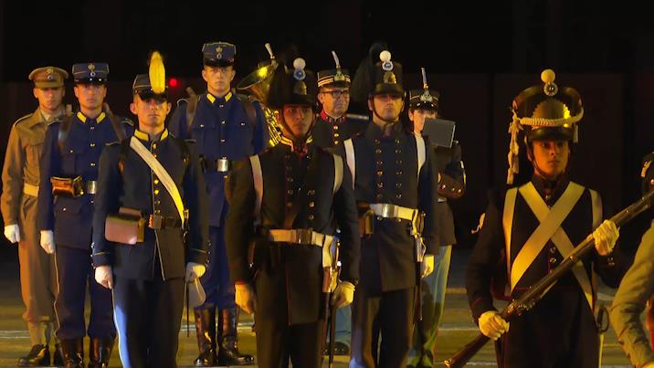 总台记者 宋一平:俄罗斯国际军乐节是一项集军事交流和文化交流于一体的活动。每年俄罗斯主办方都会邀请10多个国家的军乐团体来到莫斯科。但是由于疫情的原因,今年来到红场的只有卡塔尔、希腊、墨西哥和白俄罗斯四个国家的军乐队。大家看到在我身后表演的就是来自希腊的军乐队。