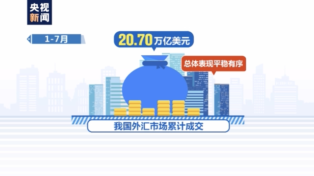 1—7月,我国外汇市场累计成交20.70万亿美元。总体表现平稳有序。