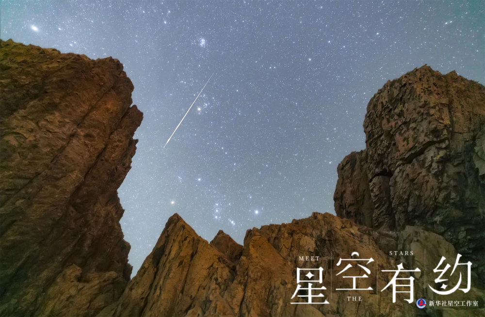 山西省天文爱好者刘钊2019年10月1日在浙江宁波花岙岛拍摄的流星划过金牛座。(本人供图)