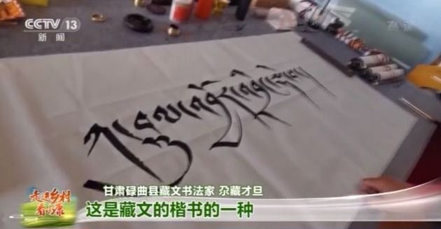 尕藏才旦 碌曲县藏文书法家:这是藏文的楷书的一种。这是尕秀小康村。