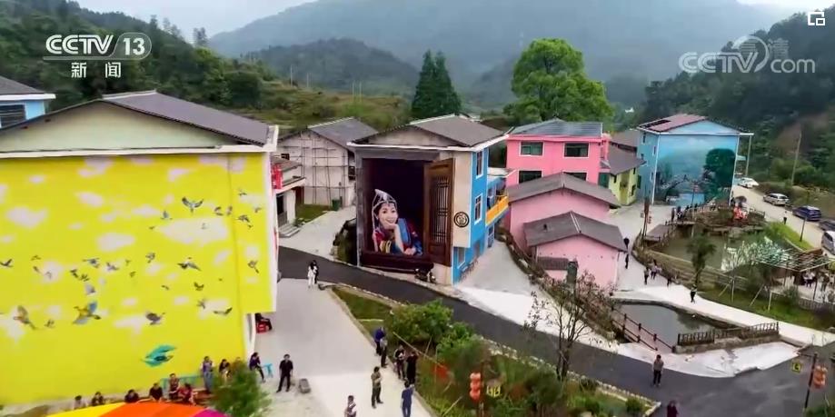 央视网消息:您现在看到的是江西省乐安县金竹畲族乡大通村,这里是曾经的省级深度贫困村。2018年,乐安县在大通村启动了彩绘村建设,这个曾经斑驳老旧的村庄变成了人在画中行的彩绘新村。