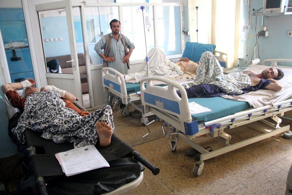 8月27日,喀布尔机场爆炸袭击中受伤的人在喀布尔一家医院接受治疗。(新华社发,塞夫拉赫曼·萨菲摄)