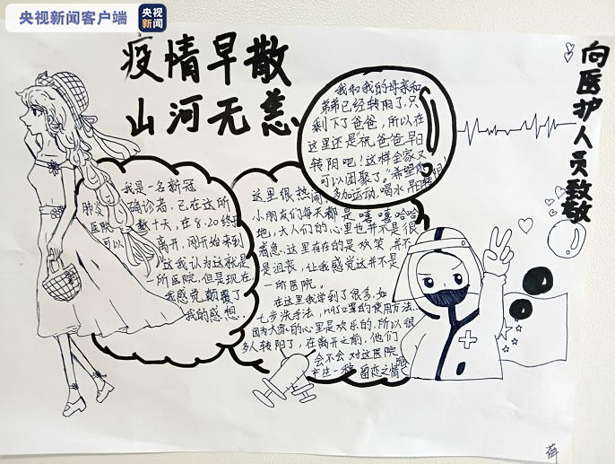 最近,在南京公共卫生医疗中心,一名六年级的小女孩欣欣(化名)治愈出院了。南京市儿童医院驻公卫中心医疗队队员甘聪收拾欣欣出院后的房间时,意外在墙上发现了一幅画和一段留言。