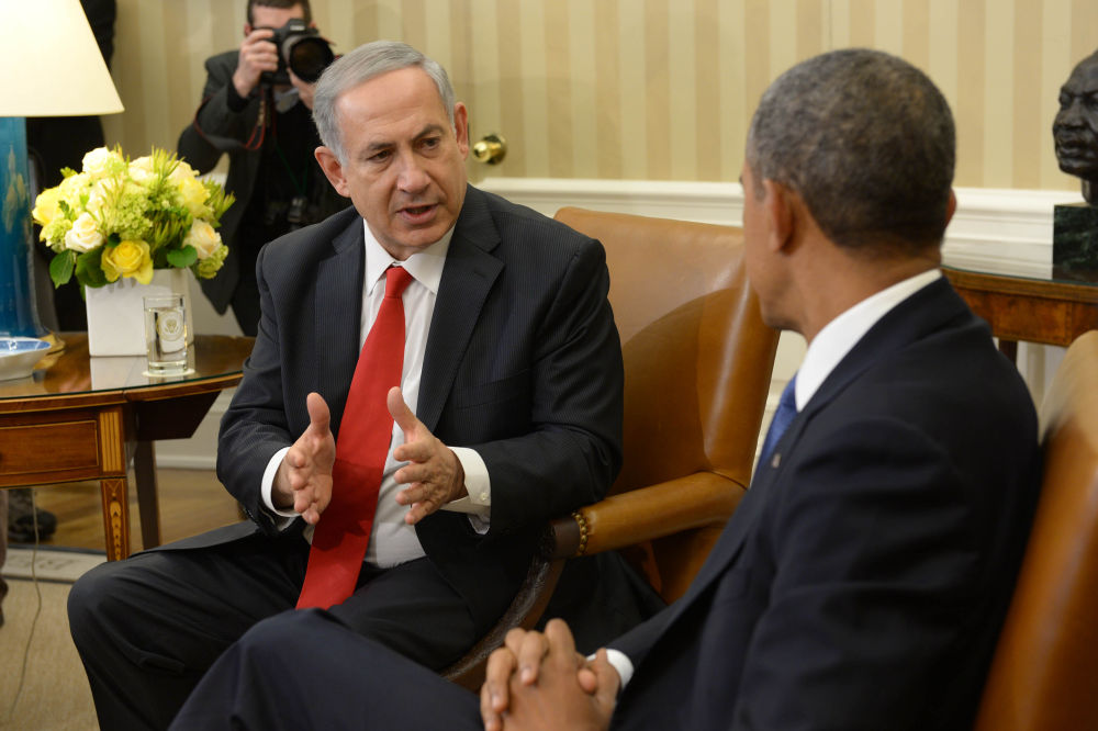 2014年3月3日,在美国首都华盛顿的白宫,时任美国总统奥巴马(右)会见到访的时任以色列总理内塔尼亚胡。(新华社发,阿夫·瓦永摄)