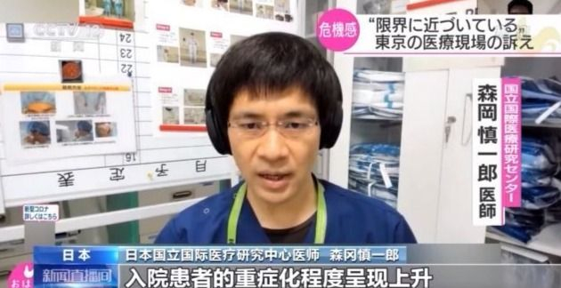 日本国立国际医疗研究中心医师 森冈慎一郎:入院患者的重症化程度呈现上升,现在护理一位患者的工作量比以前增加许多,医疗资源已接近极限。