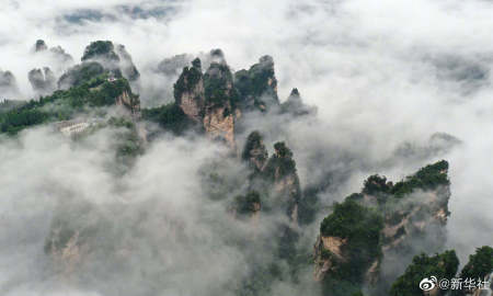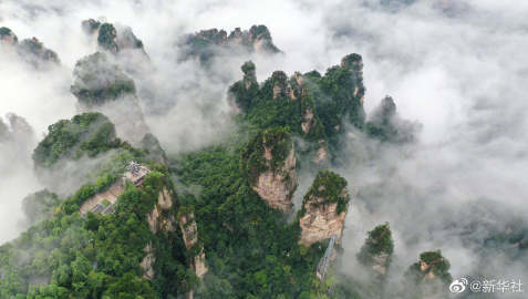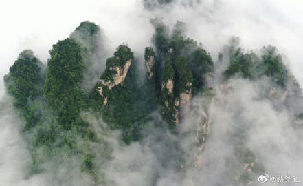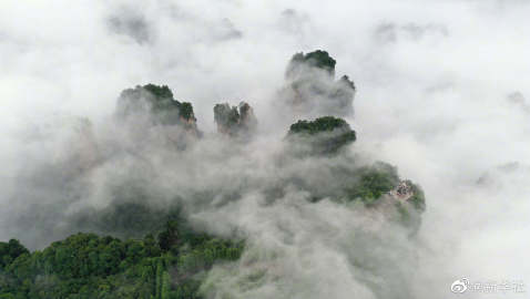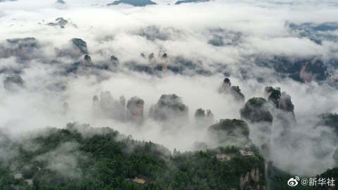 【云起峰林间】8月28日,连续降雨后的湖南省张家界武陵源景区#黄石寨出现壮美云海景观#,峰林间云雾缥缈,宛如水墨仙境。