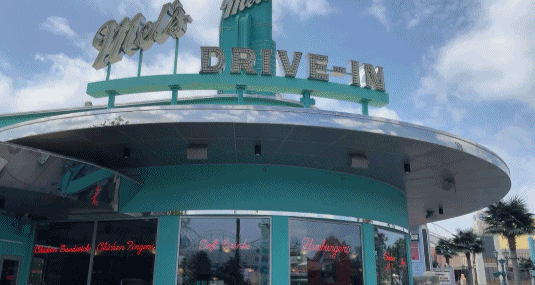 总台记者 罗子瑛:北京环球度假区拥有80个餐厅和餐饮零售点,比较著名的有梅尔斯餐厅,它几乎是每个环球影城的标配。这个汽车餐厅还原的是1973年的老电影《美国风情画》,不仅门口停满老式复古车,而且还有一个非常著名的车厢用餐区。