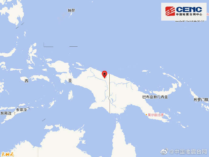 印尼巴布亚省发生5.5级地震 震源深度30千米