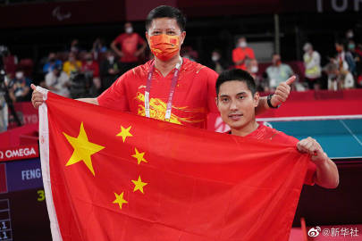 #第16届残奥会#【#冯攀峰夺得乒乓球男单3级冠军#】8月28日,在东京残奥会乒乓球男子单打3级决赛中,中国选手冯攀峰战胜德国选手施米德贝格尔,夺得冠军。#中国残奥健儿们加油#