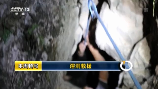 在确定了被困者的具体方位后,救援人员决定采取绳降下坠的方式展开营救。洞口处就是一个斜坡,而斜坡的尽头便是垂直于斜坡,且深度高达三十多米的天然溶洞,三名被困人员就位于溶洞的底部,其中还有一名人员的右小腿在下落时就已经摔断。