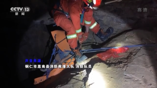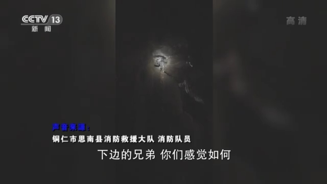 贵州省铜仁市思南县消防救援大队 消防队员:下面的四名同志是来探险的,是沿河县的。没有受伤的一个人员就出来,有信号了然后打电话就报警。