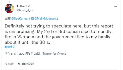 一位网友在评论中提及家人在越南战争中的遭遇:“我绝对不是在臆测,但这个消息并不令人意外。我的堂兄在越南死于友军开火,政府在80年代之前却一直向我的家人撒谎。”