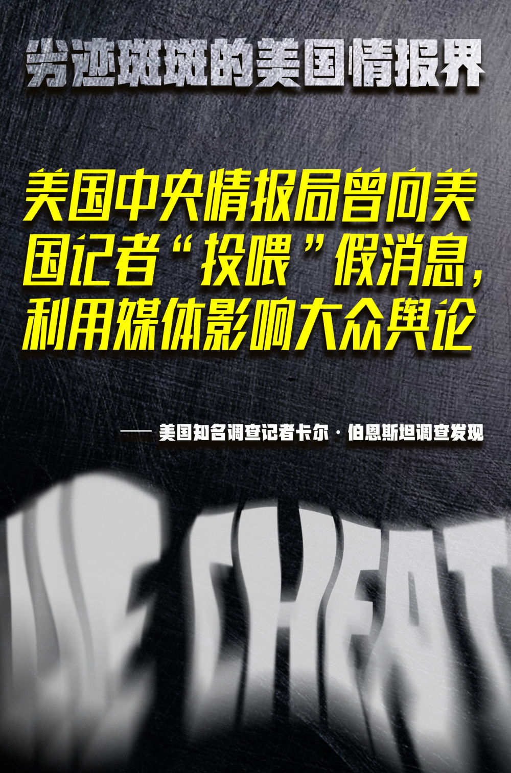 操纵媒体——中情局曾在冷战时期发起“知更鸟行动”,旨在通过操纵媒体影响大众舆论。美国著名调查记者卡尔·伯恩斯坦早在1977年就揭露,该计划招募的许多记者有偿为中情局提供情报,并根据其授意撰写“假新闻”。时至今日,美国一些媒体与情报机构仍保持着相互利用的关系,暗中充当情报界的“马前卒”。