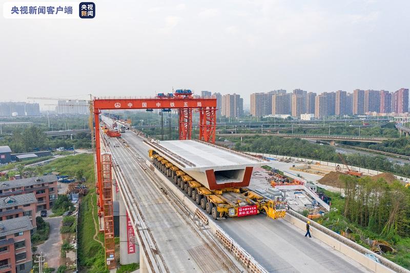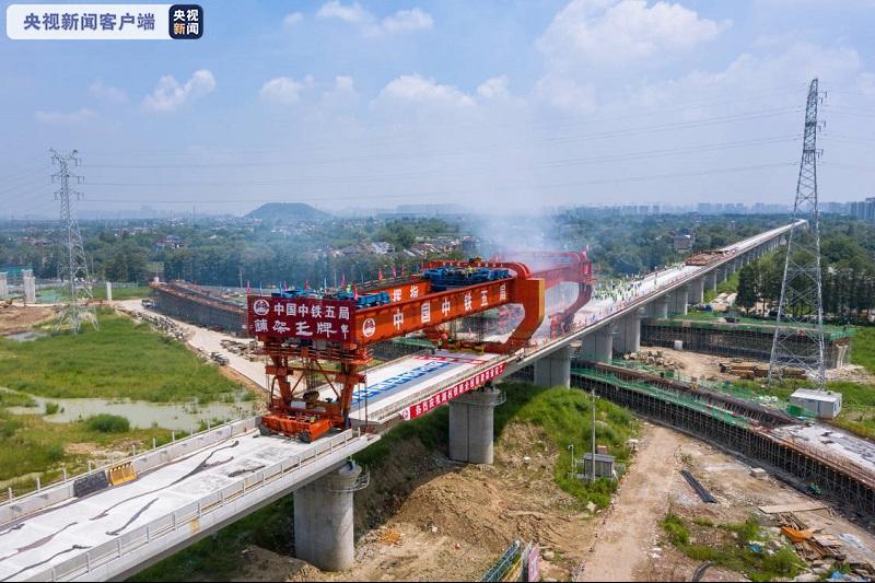 今天(29日)11时18分左右,在浙江湖杭铁路中铁五局承建的4标段,施工人员操纵架桥机将最后一孔箱梁成功架设在杭州西站东端咽喉区特大桥上,标志着湖杭铁路箱梁架设全线完工,湖杭铁路建设取得阶段性进展,为2022年亚运会前开通运营奠定坚实基础。