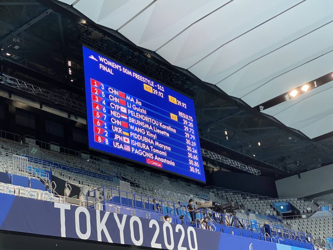 刚刚,东京残奥会女子50米自由泳S11级比赛,中国队马佳以29秒20的成绩夺冠,并打破世界纪录!