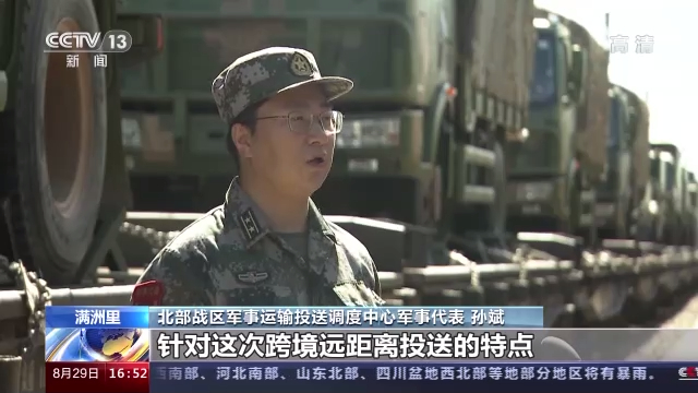 北部战区军事运输投送调度中心军事代表 孙斌:针对这次跨境远距离投送的特点,我们把新近研发的器材投入到装载中,不仅能有效缩减装载辅助人员数量,还能提高装载效率,减少官兵室外暴露时间。