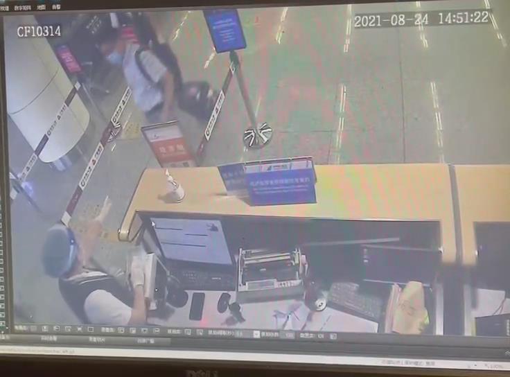 14:51,旅客张医生携带行李箱出现在登机口。