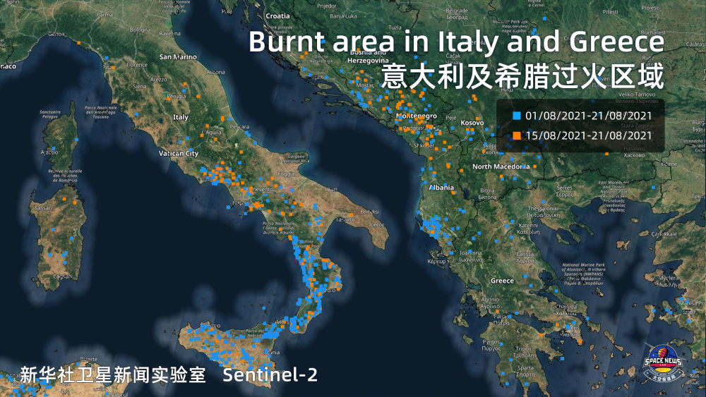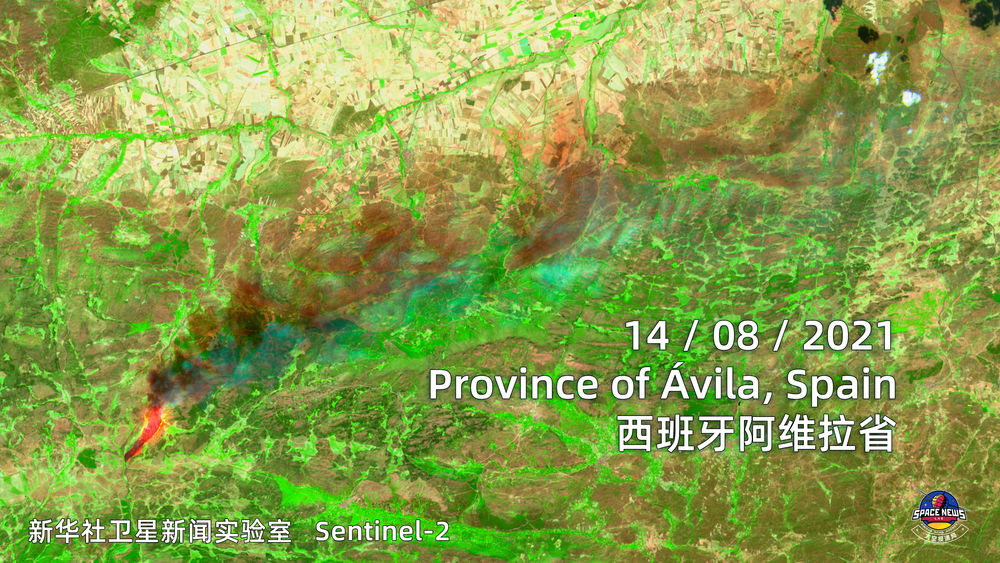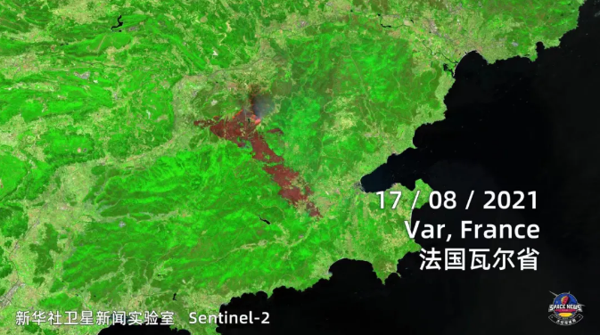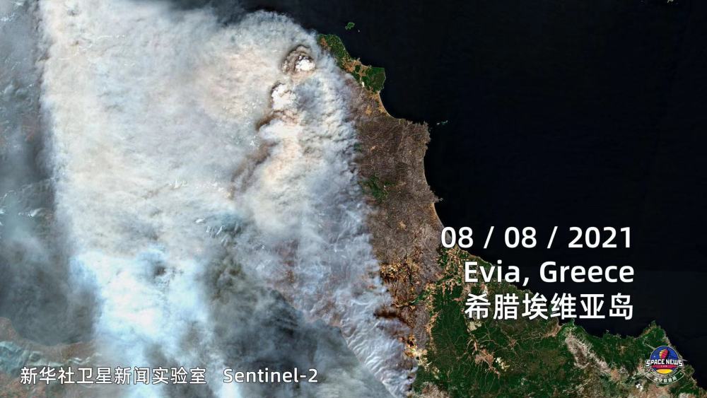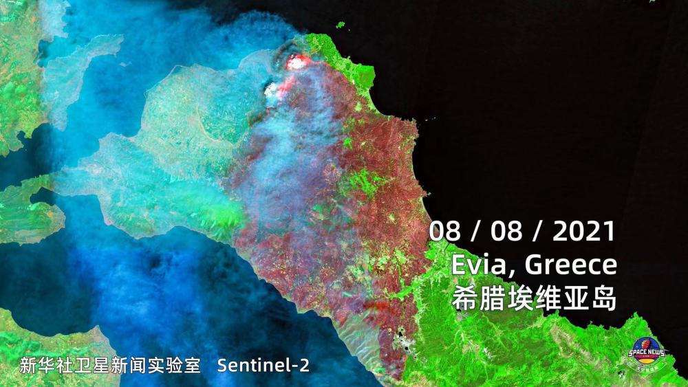 新华社通过卫星观察到欧洲的山火走势,隔着屏幕都能感受到滚滚热浪扑面而来。