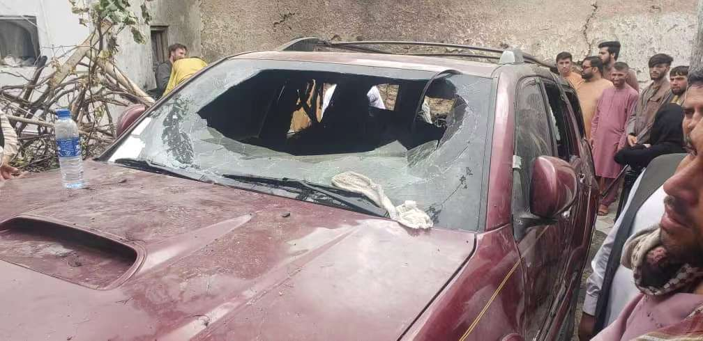 中央广播电视总台喀布尔报道员抵达现场探访时看到,被击中的汽车仍在院落中,旁边一辆汽车也受到波及。几名年轻人正在清理车辆残骸,车内的很多生活用品已然面目全非。