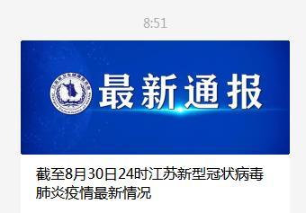 央视网消息:“健康江苏”微信公众号8月31日通报,8月30日0-24时,江苏无新增本土确诊病例。新增出院病例73例(均为本土确诊病例)。