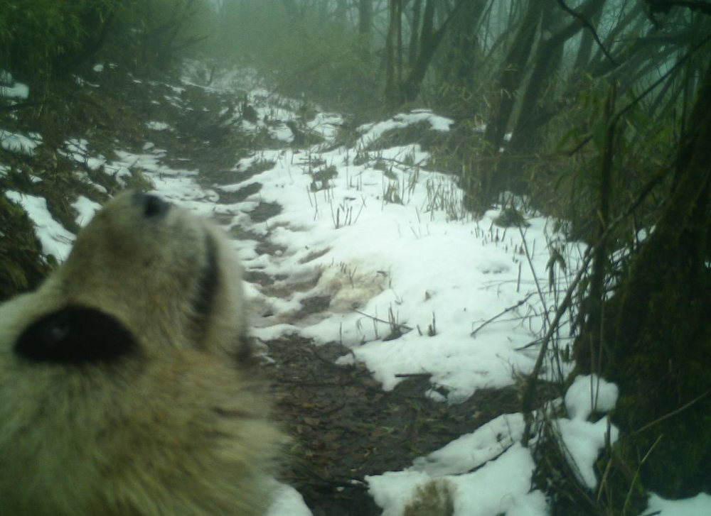 ↑大熊猫“歪头杀”照片。(四川蜂桶寨国家级自然保护区管护中心供图)