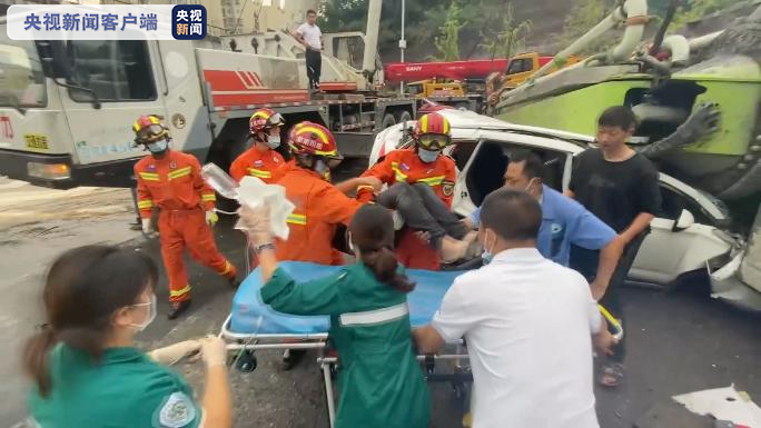 经过近一个半小时的努力,两名被困人员被成功救出,交由120医护人员,送往医院进一步救治。据混凝土泵车司机介绍,由于混凝土车左前胎爆胎导致车辆失控冲向对面车道后侧翻,具体事故原因交警正在进一步调查中。(总台记者 温晓)